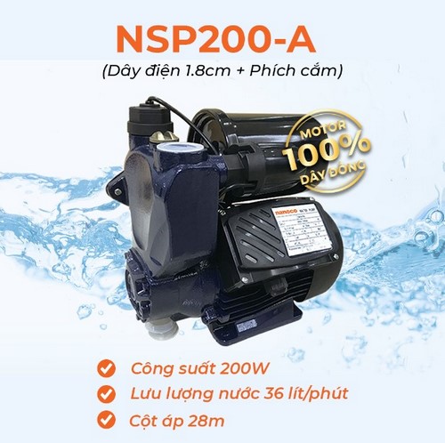 Đóng gói: 1 cái Lưu lượng nước tối đa (lít/phút): 36 Đường kính Ống hút / xả (mm): 32/32 Cột áp (m): 28 Bảo vệ quá nhiệt Mô tơ dây đồngĐánh giá